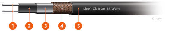 je samoregulační kabel vhodný na ochranu okapů a svodů. Výkon je 20 W/m při 10 °C na vzduchu a 38 W/m ve vodě. UV odolnost zaručuje dlouhou životnost. Line™ ZlabF 20–38 W/m má fluorpolymerový (teflonový) vnější plášť, proto je vhodný pro agresivní chemické prostředí nebo asfaltové (bitumenové) střechy.